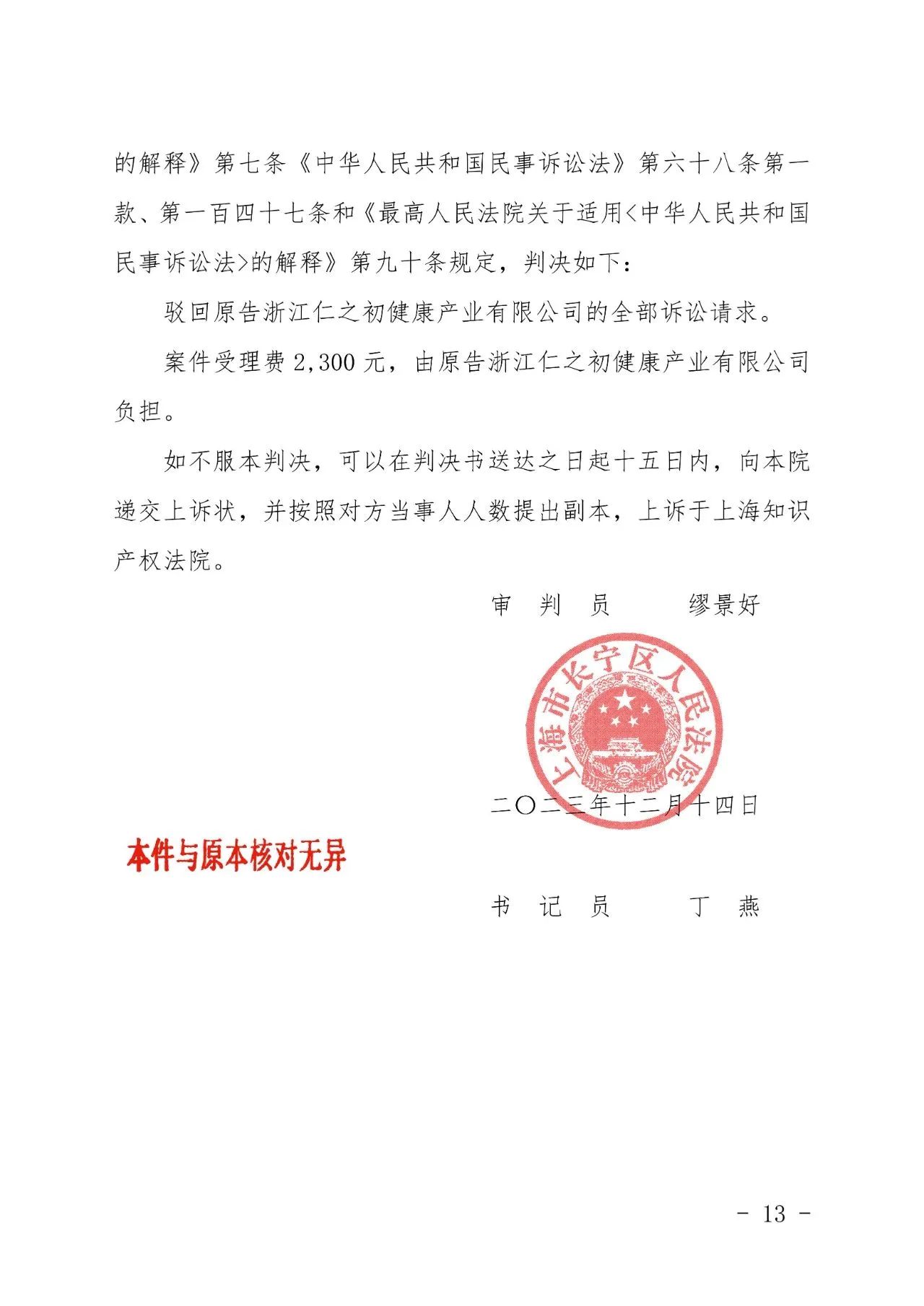 苏州辉知胜诉佳讯 | “仁之初健康”著作权及不正当竞争纠纷案,法院:驳回全部诉讼请求!